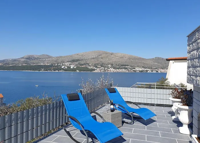 Mit Blick auf den Pool empfängt die am Strand Villa Sandrina seine Gäste mit einem Tauchbecken, einem Solarium und einem Jacuzzi für einen angenehmen Aufenthalt. Jachthafen von Trogir und Dominikanerkloster und -kirche sind nur 2 km bzw. 2,1 vom Apartment entfernt.